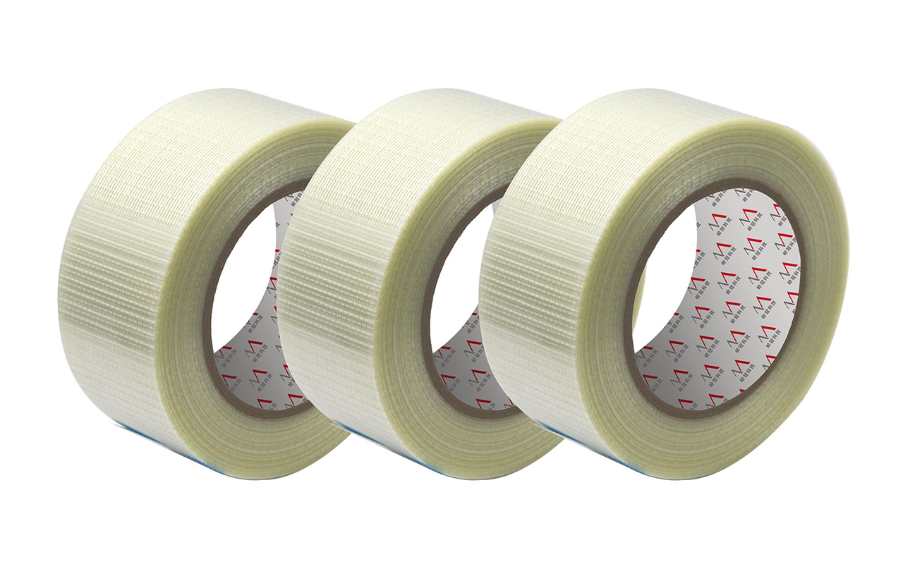 玻璃纖維膠帶主要以PET膜玻璃纖維為基材,加強型單向纖維膠帶,柔軟性好,特制膠粘劑,揭除后不留殘膠,適用家電電器產(chǎn)品活動部件的固定等行業(yè)。纖維膠帶是一款透明加強型纖維膠帶,玻璃纖維絲讓這種膠帶比普通膠帶有了更好的拉伸強度,采用改良型合成橡膠獨特配方,使家電電器產(chǎn)品零部件在生產(chǎn)過程中能夠很好的粘貼在一起,不留殘膠,具有極強耐磨性。亦適用于捆扎橋梁鋼繩、玻璃制品、鋼卷、家具固定等。